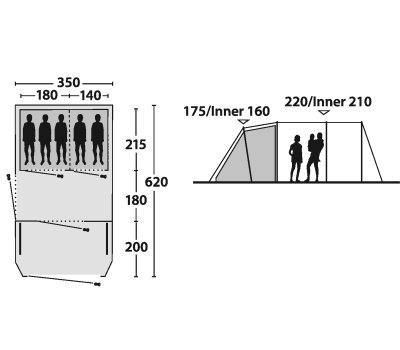 Outwell Niagara Falls Tent 2012 Ambiente Collection in a light mocca to complement the main tent's colour Four room tunnel tent Sleeps: Five people